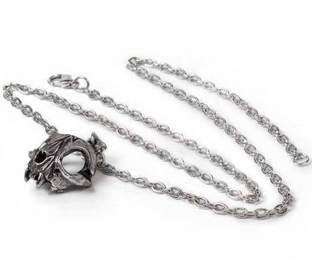 Kovový odlitek ve tvaru havranu. Zavěšeno na stříbrném řetízku. Upevněno karabinou. ALCHEMY Anglie kolekce Rozměry: lebka cca 1, 6 x 2, 7 x 0, 5 cm; řetí