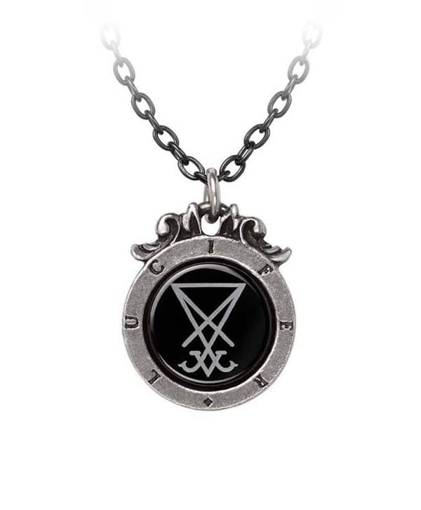 Licence - Import. Rozměry přívěsku jsou přibližně 82 × 82 × 10 mm. Ručně vyrobený přívěšek z černěného cínu s ručně leštěnými akcenty. Řetízek na krk Evil – Ution je výrazný gotický šperk, který spojuje mystiku, temnotu a elegantní řemeslné zpracování.