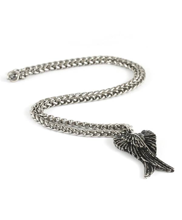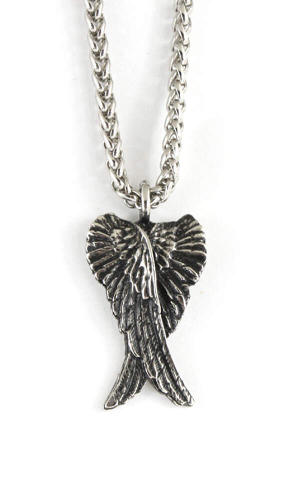 přívěšek je vyroben z odlitku kovu stříbrné barvy ve tvaru křídla a je zavěšen na řetízku složeného z kuliček. Licence Rozměry: přívěšek cca 2 x 7 cm.