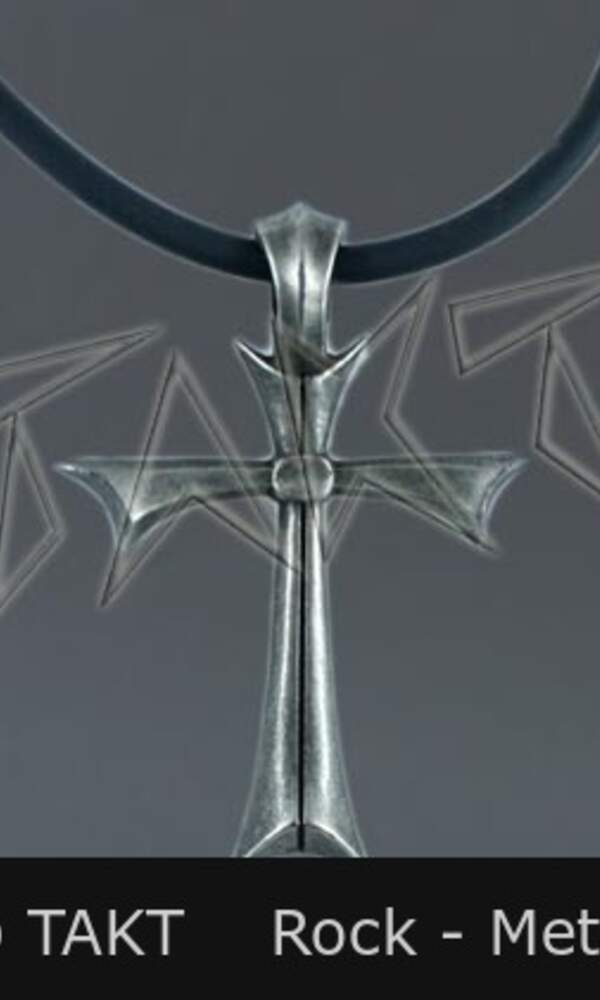 Přívěšek je vyroben z odlitku kovu stříbrno - . Barva: černá ve tvaru kříže, který je zavěšen na černém řetízku. Rozměry:přívěšku cca 6, 5 x 10 cm, délka řetězu cca 52 cm.