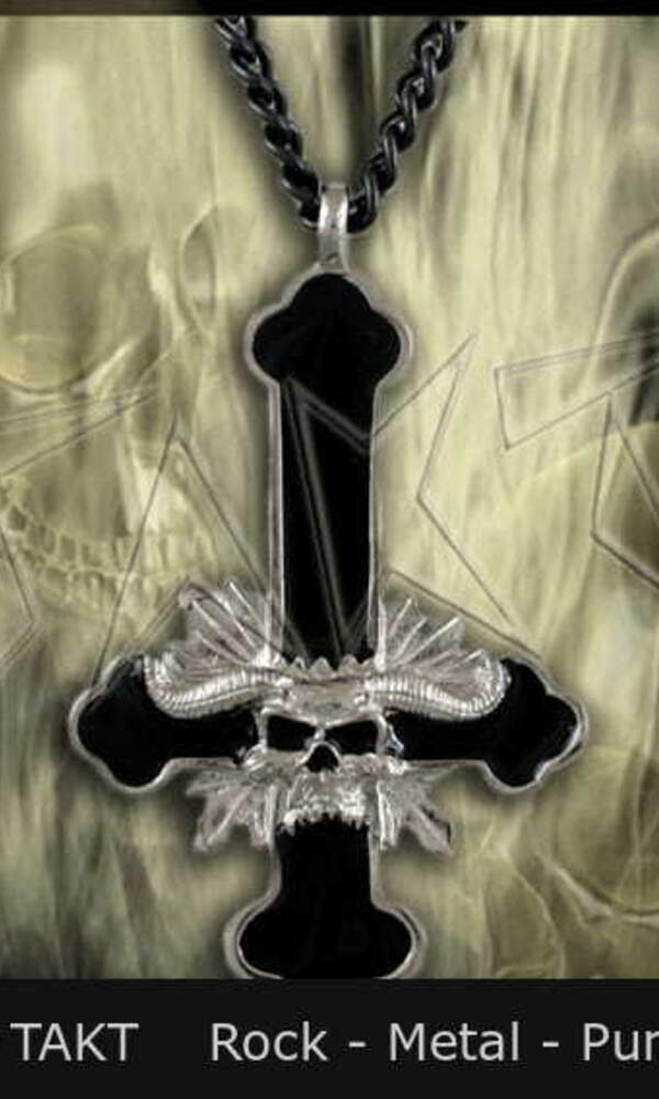Přívěšek je vyroben z odlitku kovu stříbro. Barva: černá ve tvaru kříže, který je zavěšen na černém řetízku. Rozměry:přívěšku cca 6,5 x 10 cm, délka řetězu cca 52 cm.