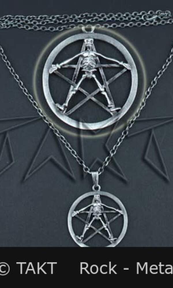 je vyroben z odlitku kovu, pentagramy o průměru cca 2, 5 cm. Přívěšek je zavěšeny na ozdobném řetízku stříbrné barvy o délce cca 48 cm. Do sady je možno dokoupit náramek. Přívěsek na krk je pěkný dárek pro všechny generace. Navíc také každého fandu či . . .