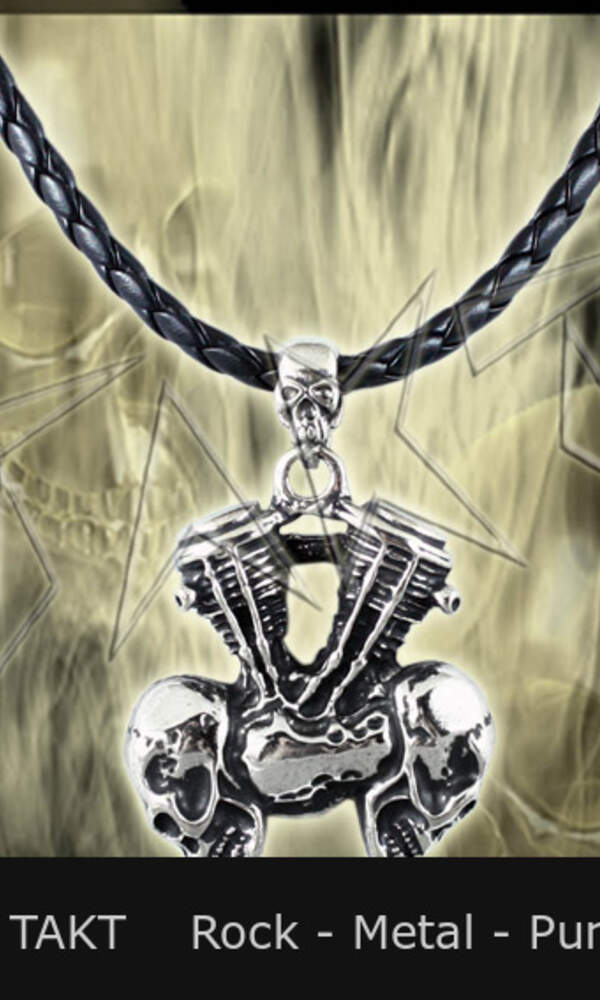 přívěšek je vyroben z odlitku kovu stříbrné barvy, ve tvaru lebky. Zavěšený je na řetízku spojeného s koženým řemínkem. Další přívěsek ve tvaru desky má vyrytá tato slova "I feel about you makes my heart lone to be free" Rozměry: Lebka cca 2, 5 x 2, 5 cm, . . .