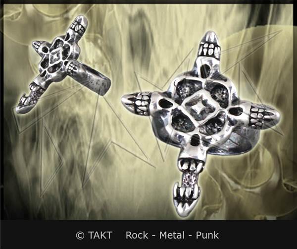 Vyrobeno z kovu odlitého do tvaru lebky. Leštěný. Upoutá pozornost nápadným detailním zpracováním. Prsten je k dispozici v průměru cca 21 mm, 22 mm, 23 mm, 24 mm. Rozměry: max. šířka cca 2, 5 cm