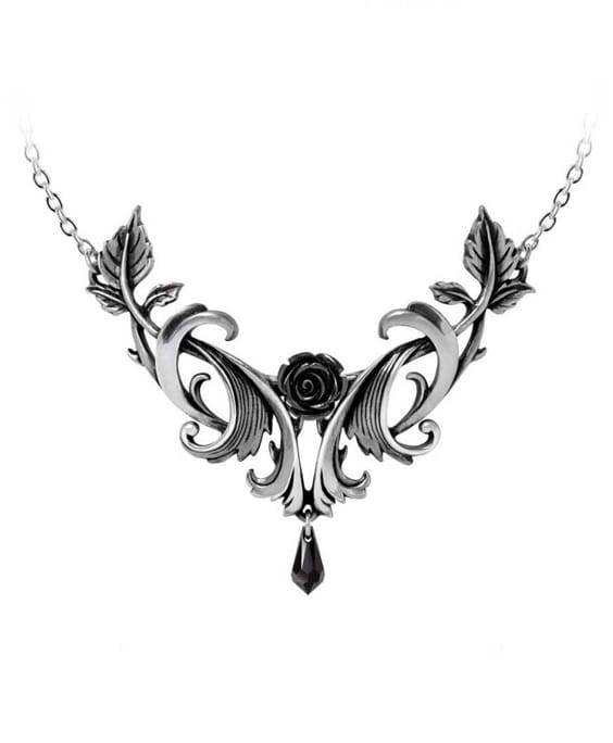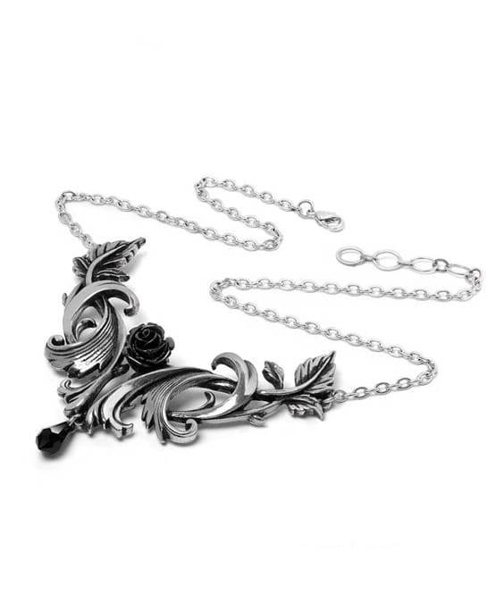 Licence - Import Alchemy England. Nádherně jemný náhrdelník s mnoha detaily a černou růží uprostřed, zvýrazněnou úžasným černým rakouským krystalem. Tento náhrdelník byl inspirovaný barokním stylem.