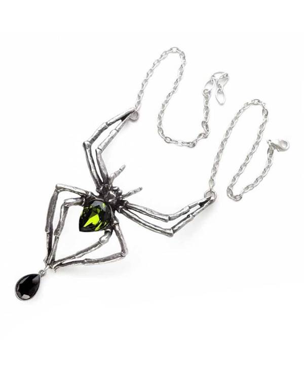 Licence - Import Alchemy England. Obří cínový náhrdelník s pavoukem osázený zelenými a černými rakouskými krystaly.