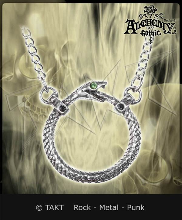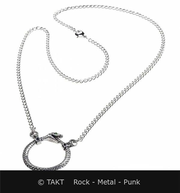 ALCHEMY ENGLAND. Kovový náhrdelník stříbrné barvy ve had. Zapínání na karabinku.