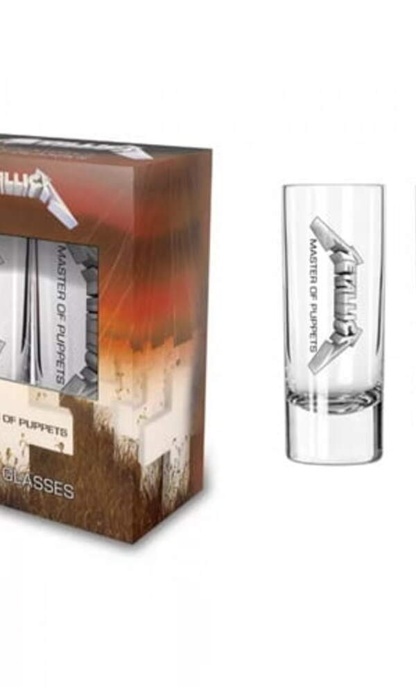 Licence Import - Sada vysokých skleněných štamprlí s potiskem. Sada obsahuje 2 kusy. Rozměry: výška cca 10 cm.