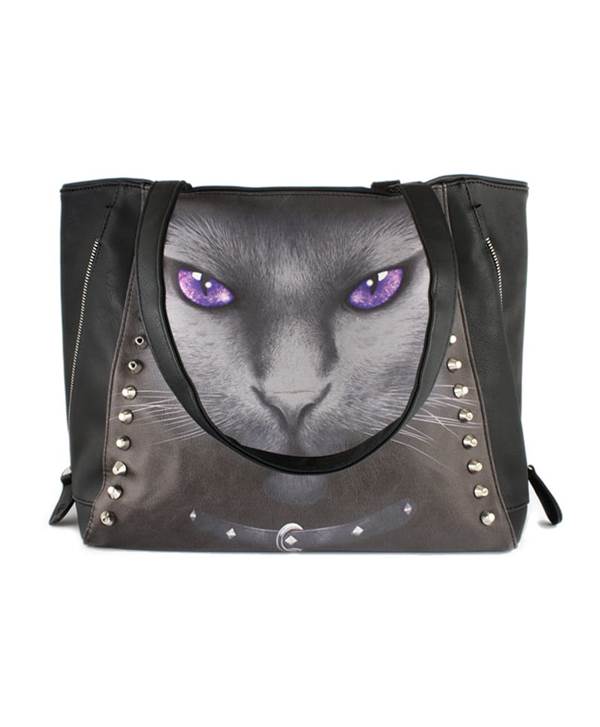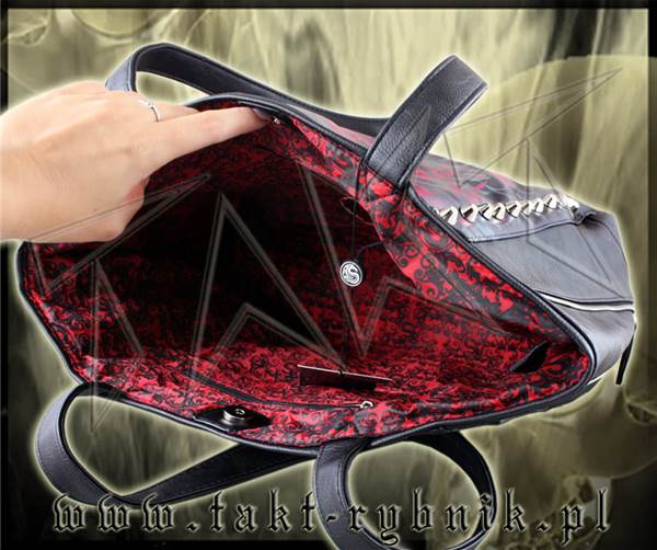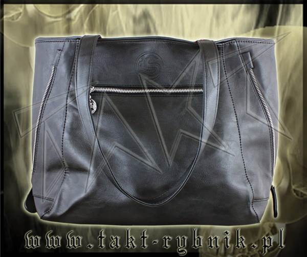 Materiál: vysoce kvalitní organická kůže. Taška je zdobena velkým potiskem a cvočky. Na bocích tašky jsou zipy, které jej sužuje. Taška má četné kapsy - uvnitř je kapsa na zip a dvě otevřené kapsy na telefon a drobnosti, zatímco na zadní straně tašky je další kapsa na zip. Vnitřek vaku je potažen ozdobným materiálem.