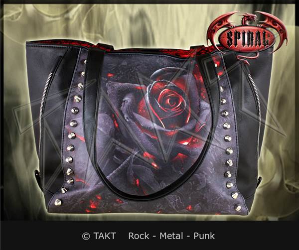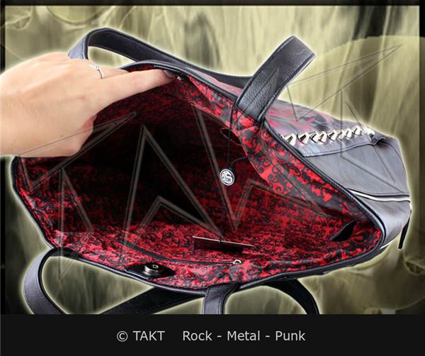 Materiál: kvalitní ekologická kůže. Taška zdobená velkými tisky a čepy. Na bocích tašky jsou zipy umožňující jejich snížení. Taška má mnoho kapes - uvnitř je kapsa na zip a dvě volné kapsy pro telefon a drobné předměty, zatímco zadní část tašky má další kapsu na zip. Střed tašky lemovaný dekorativním materiálem. Licence - Import SPIRAL Rozměry: šířka cca 37 cm, výška cca 33 cm, hloubka cca 14 cm.