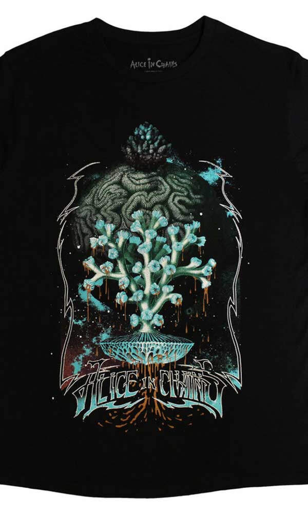 Tričko Alice In Chains – Spore Planet je originální merch, který nadchne každého fanouška temného grungeového světa kapely Alice In Chains. Dominantní psychedelický motiv připomínající mutující houbovou strukturu vyrůstající z mozku vytváří silnou vizuální symboliku pro hluboké a introspektivní témata, která jsou pro tuto kapelu typická.