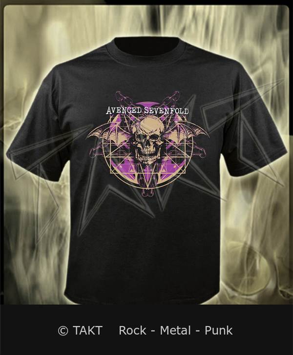 Barva: černá. Technologie: sítotisk. Potisk na přední straně trička. Materiál: 100% bavlna o gramáži 190 gr/ m2. Fanouškovi by nemělo chybět tričko Avenged Sevenfold v šatníku. Licence Příklad rozměru vzorku velikost M: délka - cca 71 cm, šířka - cca 49 cm