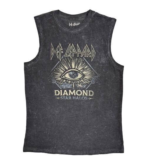 Tento kousek ocení každý fanoušek rockové klasiky – tričko bez rukávů Def Leppard – Diamond Star Halos je perfektní na koncerty, festivaly i každodenní nošení.