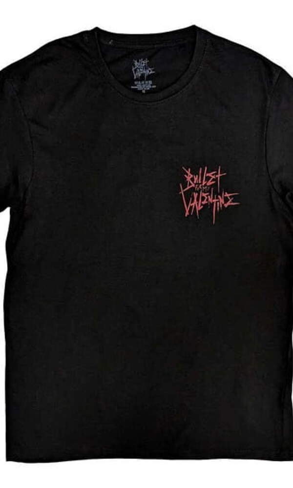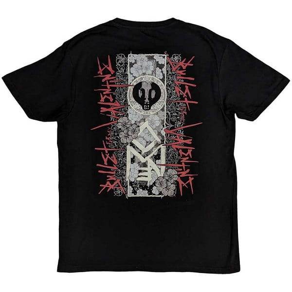 Tričko Bullet For My Valentine - Floral Omen je stylovým kouskem pro každého fanouška této metalcore kapely. Na přední straně trička se nachází minimalistické logo Bullet For My Valentine v červené barvě, zatímco zadní strana přináší výrazný a propracovaný design s motivem „Omen“ obklopeným květinovými vzory a dalšími grafickými prvky. Tento kontrast mezi jednoduchostí a komplexností vytváří unikátní a atraktivní vzhled.