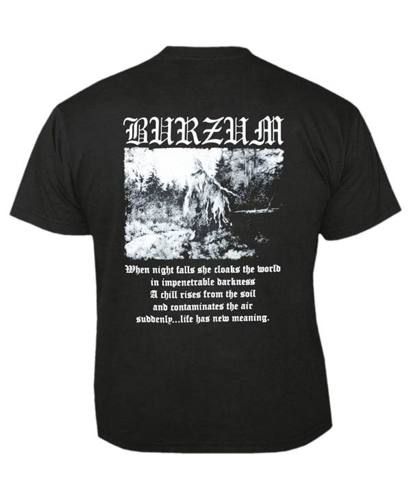 Barva: černá. Technologie: sítotisk. Potisk na přední a zadní straně trička. Materiál: 100% bavlna o gramáži 200 gr/ m2. Fanouškovi by nemělo chybět tričko skupiny Burzum v šatníku.