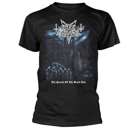 Tričko Dark Funeral – The Secrets Of The Black Arts je oficiálně licencovaný produkt pro fanoušky jedné z nejvýraznějších švédských black metalových kapel Dark Funeral. Přední straně dominuje temná grafika inspirovaná ikonickým debutovým albem The Secrets Of The Black Arts, doplněná o logo kapely a nápis s názvem alba. Zadní strana zobrazuje černobílou siluetu členů kapely na pozadí gotického zámku v ledově modrých tónech.