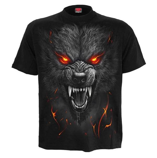 Přední strana dominuje agresivní tvář šelmy s ohnivým pohledem, zadní strana pak rozvíjí příběh motivem vlka vyjícího k měsíci v ornamentálním rámu. Celek působí temně, fantasy a lehce apokalypticky, přesně v duchu obrazu probuzeného nejhlubšího strachu. Tričko Darkest Fear tak osloví každého, kdo má rád výrazné motivy, silnou symboliku a merchandise s atmosférou.