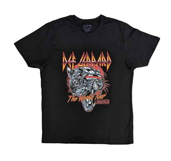 Tričko Def Leppard - World Tour 2023 Leopard se hodí na koncerty, volný čas i jako dárek pro každého, kdo chce nosit výrazný a snadno rozpoznatelný kapelní motiv. Díky černé barvě a silnému designu se dobře kombinuje s běžným outfitem a potěší každého fanouška kapely Def Leppard.