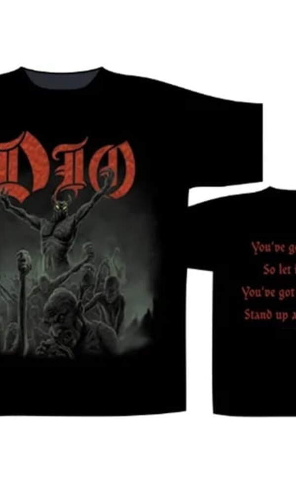 Uctěte legendu heavy metalu s tričkem Dio - Stand Up And Shout, které je perfektní volbou pro každého fanouška Ronnieho Jamese Dia a jeho hudby. Přední strana trička je zdobena ikonickým uměleckým motivem s názvem kapely *Dio* a silnou postavou v pozadí, která evokuje mystiku a sílu, jež jsou pro tvorbu Dio typické. Zadní strana trička obsahuje text z písně "Stand Up And Shout", který motivuje a dodává energii.