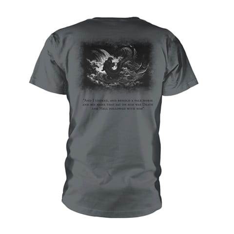 Tričko Emperor - Rider je výrazný kousek pro všechny příznivce black metalu a temného umění. Na přední straně trička je detailní ilustrace jezdce smrti v gotickém stylu, podtržená červeným logem kapely Emperor. Zadní část doplňuje výjev z biblické Apokalypsy doplněný citací, která podtrhuje mystickou a apokalyptickou atmosféru celého designu.