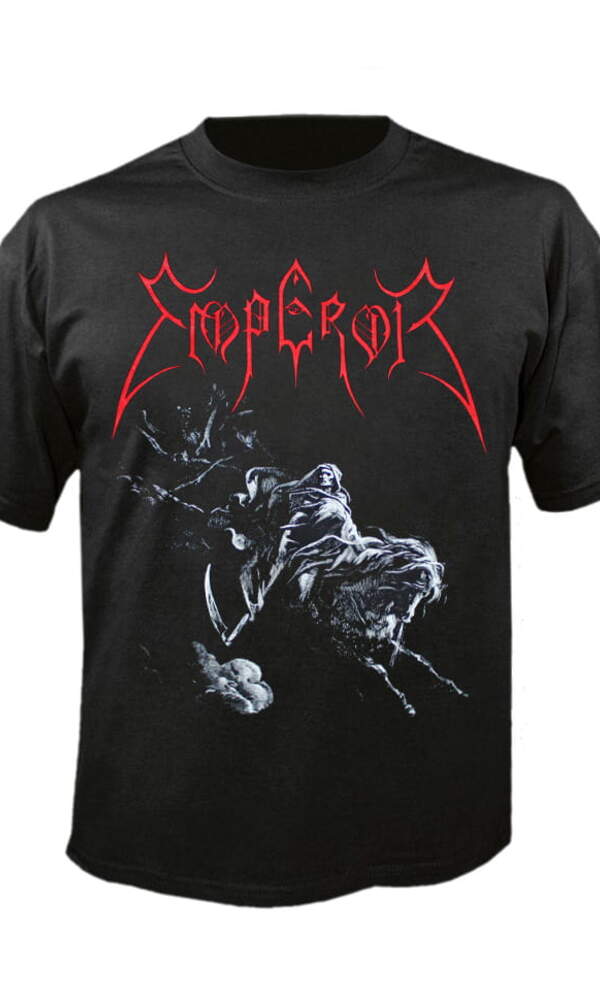 Tričko Emperor – Rider představuje ikonický kousek pro fanoušky norské black metalové scény. Výrazný potisk s motivem jezdce smrti na přední straně v kombinaci s červeným logem kapely a zadní grafikou s pentagramem a fotografií kapely činí tento kousek skutečně výjimečným. Emperor patří mezi nejvlivnější skupiny žánru a jejich tvorba je známá svou symfonickou komplexností, temnou atmosférou a mistrovským hudebním zpracováním.