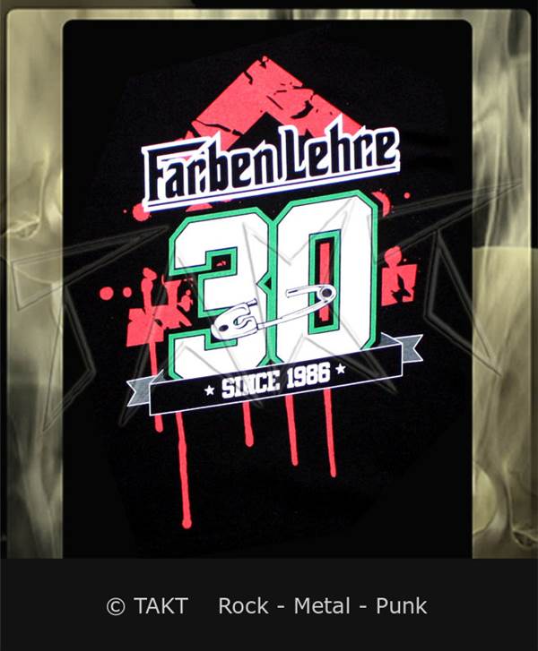 Barva: černá. Materiál: kvalitní 100% bavlna. Technologie: sítotisk. Potisk na přední a zadní straně trička. Fanouškovi by nemělo chybět tričko Farben Lehre v šatníku. Příklad rozměru vzorku velikost S: délka cca - 69 cm, šířka - cca 52 cm