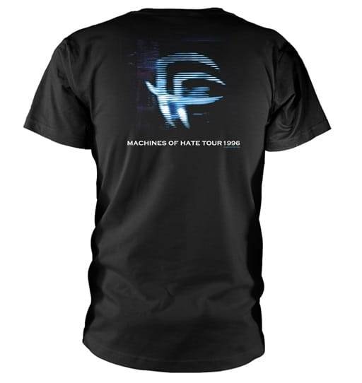 Na zadní straně trička FEAR FACTORY najdete ikonický symbol *FF* a nápis "Machines of Hate Tour 1996", který připomíná slavné turné k podpoře alba *Demanufacture*. Tričko je vyrobeno z vysoce kvalitní 100% bavlny, která poskytuje pohodlí a dlouhou životnost. Rovný střih zajišťuje, že tričko padne skvěle na každou postavu, a černá barva dodává tričku klasický metalový vzhled.