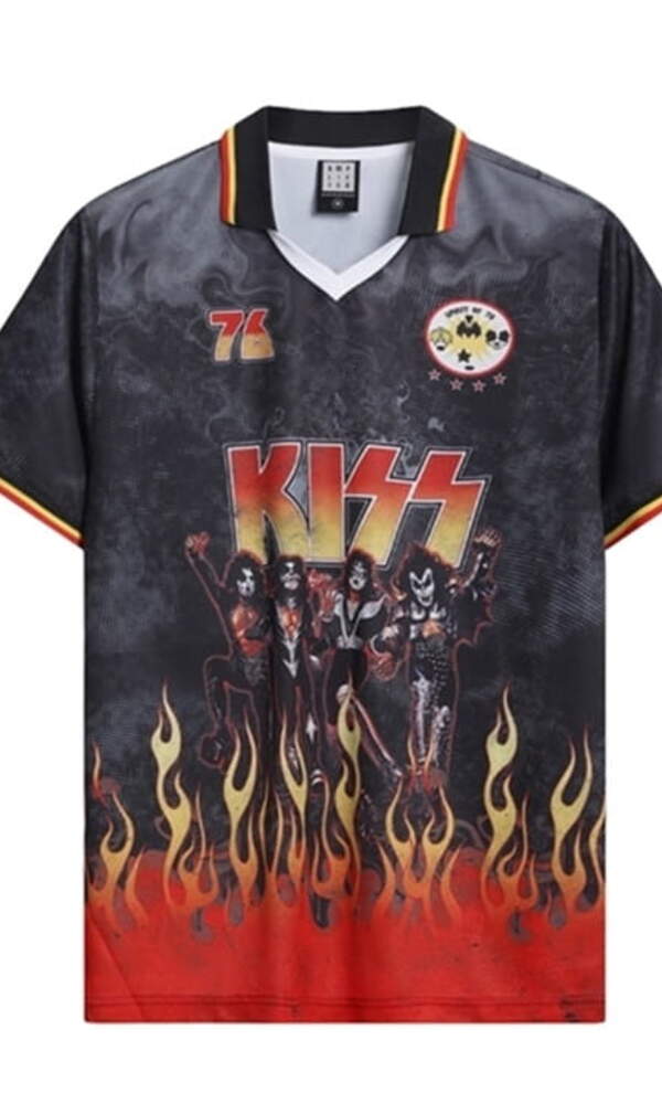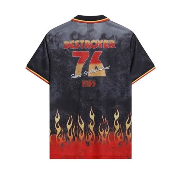 Tričko / fotbalový dres Kiss – Destroyer je výrazný a nepřehlédnutelný kousek, který spojuje ikonickou vizuální estetiku kapely s moderním sportovním stylem. Celoplošný motiv s plameny, členy kapely a typickým logem okamžitě evokuje energii a teatrálnost, která je pro Kiss tak typická.