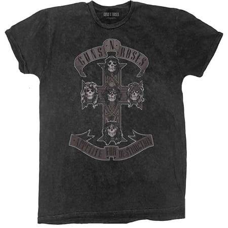 Tričko Guns N Roses – Appetite For Destruction je ikonický kousek z oficiální limitované edice WASH kolekce, který vzdává hold jednomu z nejzásadnějších alb rockové historie. Přední stranu trička zdobí legendární motiv kříže s lebkami jednotlivých členů Guns N Roses, známý z obalu debutového alba Appetite For Destruction.