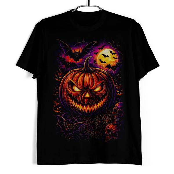 Když se setmí, měsíc vystoupí nad obzor a mezi pavučinami se rozsvítí zlověstný úsměv dýně, začíná noc, která patří strachu i zábavě. Tričko Halloween dýně a netopýři vtahuje do přesně takové atmosféry. Výrazná centrální dýně, temná obloha, netopýři a lebky vytvářejí působivý halloweenový motiv, který je nepřehlédnutelný už na první pohled.