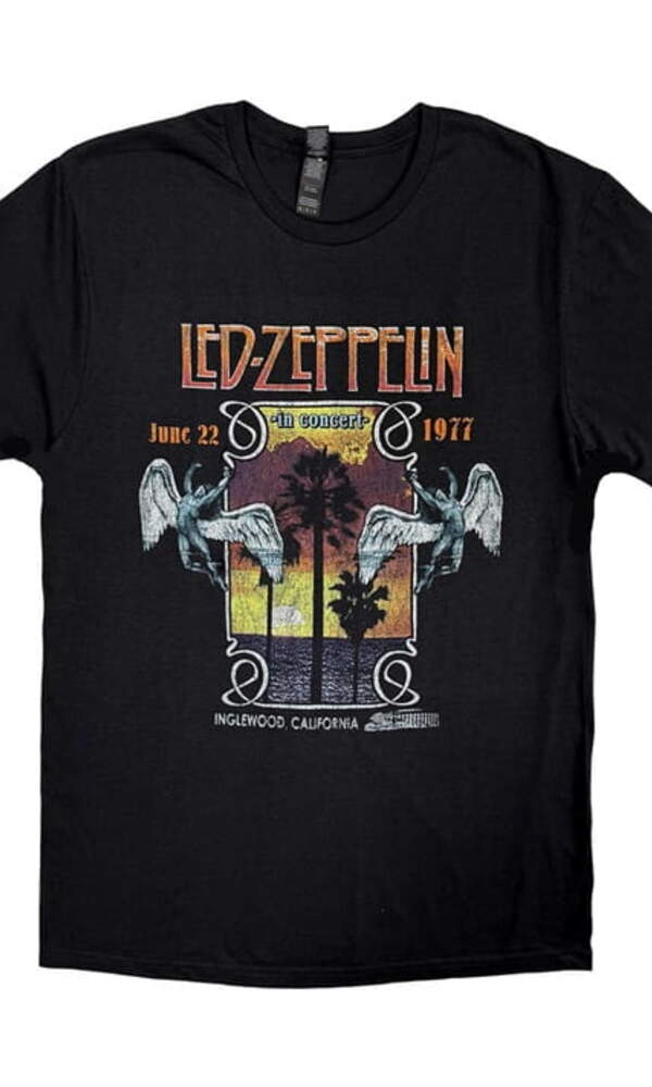 Tričko Led Zeppelin - Inglewood ocení každý, kdo hledá pohodlné černé tričko s výraznou grafikou a klasickým rockovým charakterem. Skvěle se hodí do sbírky i pro každodenní nošení a potěší fanoušky kapely Led Zeppelin, kteří mají rádi motivy spojené s koncertní érou a silnou vizuální atmosférou.