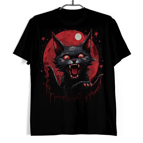 Uvolněte svého vnitřního rebela s naším tričkem - Lunární zrůda, které vás zavede do mystického světa plného temnoty a divoké krásy zuřivého kocoura, který vyráží z pozadí krvavě červeného měsíce. Jeho pronikavé krvavé oči a výraz divokosti a nezkrotné síly odhalí vaši dravou duši.