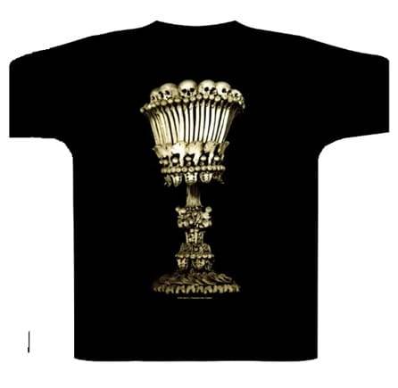 Temné a ikonické tričko Marduk – La Grande Danse Macabre je povinnou výbavou pro všechny příznivce švédské black metalové legendy Marduk. Design inspirovaný stejnojmenným albem La Grande Danse Macabre z roku 2001 zobrazuje majestátní lebku s královskou korunou na hrudi, doplněnou o logo kapely a latinský název alba. Zadní stranu zdobí monumentální kalich složený z lebek a kostí, čímž umocňuje temnou atmosféru celého trička.
