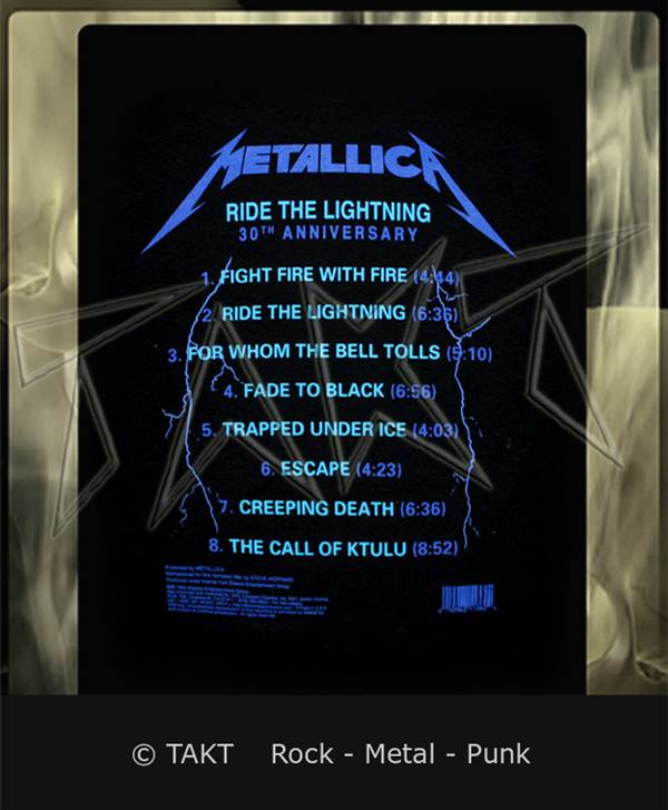 Barva: černá je provedeno z velmi kvalitní 100%, gramáž 180 gr/ m2. Technologie: sítotisk ALL PRINT. Fanouškovi by nemělo chybět tričko skupiny Metallica v šatníku. Licence