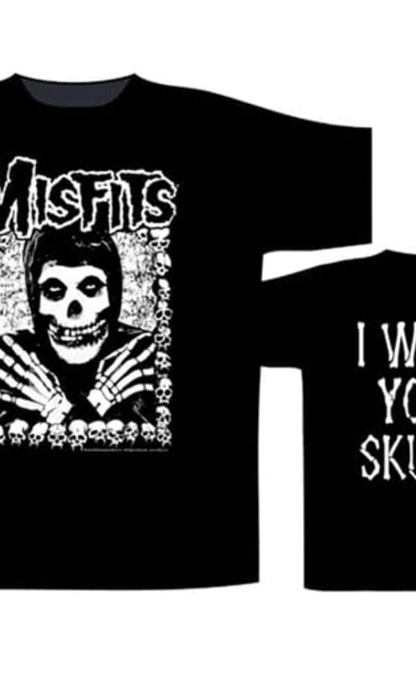 Pro fanoušky punk rocku a hororové estetiky je zde tričko Misfits - I Want Your Skulls. Na přední straně se nachází ikonická grafika s lebkou a logem Misfits, která patří k jejich nejznámějším symbolům. Zadní strana je zdobena nápisem „I Want Your Skulls“, který odkazuje na jednu z jejich kultovních skladeb.