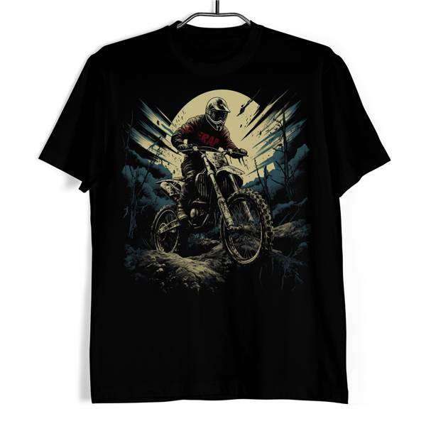 Ujíždějte ze stereotypů v tričku - Motokrosová odysea, které vzdává poctu nezkrotnému duchu motokrosu. Jasně bílý měsíc v pozadí osvětluje scénu, kde se motorkář s odhodláním a stylem prohání terénem. Toto tričko je vyrobena pro dobrodruhy, kteří milují adrenalin a bláto pod koly svého stroje. Se svým živým designem a dynamickým obrazem je toto tričko perfektním projevem vašeho životního stylu.