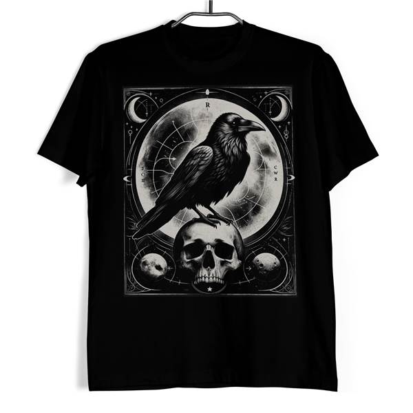 Ponořte se do tajemství kosmu s tričkem - Mystic Ravens Eclipse. Na první pohled vás zaujme důmyslný design spojující mystickou symboliku s okultním nádechem. Na černém pozadí vyniká majestátní havran, jenž sedí hrdě na lebce, a zobrazuje tak spojení mezi životem a smrtí, mezi pozemským a transcendentním. Obklopen harmonií vesmírných objektů a alchymistických znaků, které se snoubí s fázemi měsíce, toto tričko vyzařuje hluboký smysl pro introspekci a objevování skrytých pravd. Stylová volba pro každého, kdo hledá odvahu zkoumat neznámé a vyjadřuje úctu k přírodě a jejím nevyzpytatelným silám.