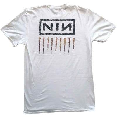 Tričko Nine Inch Nails - Downward Spiral je vyrobeno ze 100% kvalitní bavlny a díky rovnému střihu se pohodlně nosí. Přední strana zdobí jemný potisk s motivy odpovídajícími albu, zatímco zadní strana zaujme výrazným logem „NIN“ a vertikálními spirálovitými prvky. Bílé provedení vytváří zajímavý kontrast k temným motivům, čímž tričko působí originálně a moderně.