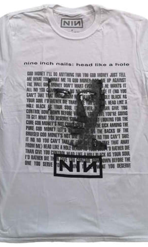 Tričko Nine Inch Nails – Head Like a Hole je originální kousek pro fanoušky průkopnické industrial-rockové kapely Nine Inch Nails. Design tohoto bílého trička je inspirován textem jednoho z nejikoničtějších singlů kapely – Head Like a Hole – a přináší stylový potisk s textem skladby a charakteristickým logem NIN na přední straně.