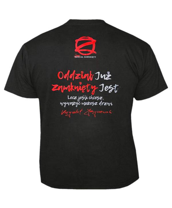 Polská kapela Oddział Zamknięty patří mezi kultovní jména rocku ve střední Evropě a je známá svými osobitými texty, které často reflektují svobodu, osobní volbu a vnitřní boj jednotlivce. Motiv „Oddział Już Zamknięty Jest“ nese symboliku uzavřené kapitoly, ale zároveň naznačuje možnost volby a překročení hranic, což dává tomuto tričku nadčasový význam.