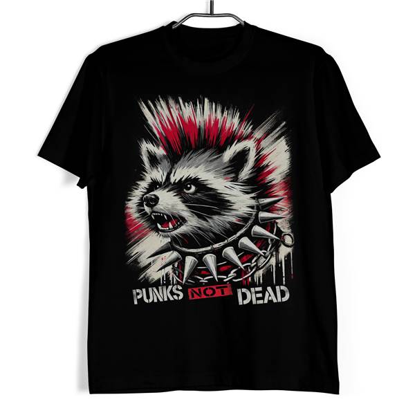 Tričko Punks Not Dead – Mýval je originálním a stylově drsným kouskem, který spojuje nespoutanou punkovou energii s divokým zvířecím motivem. Hlavní dominantou potisku je zuřivý mýval s červeným čírem a masivním obojkem s hroty, doplněný nápisem „PUNKS NOT DEAD“, který jasně hlásí vaši věrnost rebelii a svobodě.