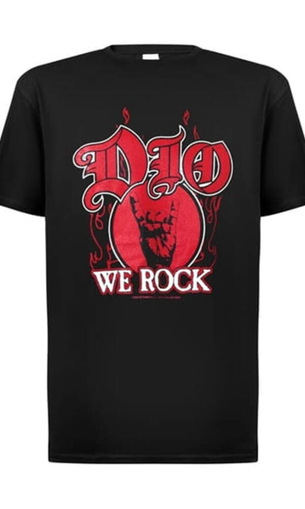 Tričko R. J. Dio – We Rock – Symbol je poctou jedné z největších ikon heavy metalu všech dob – Ronnie James Dio. Na černém podkladu vyniká výrazný červeno-bílý potisk s nápisem „We Rock“, který připomíná stejnojmenný hit z alba The Last in Line z roku 1984. Dominantním prvkem motivu je slavné „metalové rohy“ gesto, které Dio proslavil po celém světě.