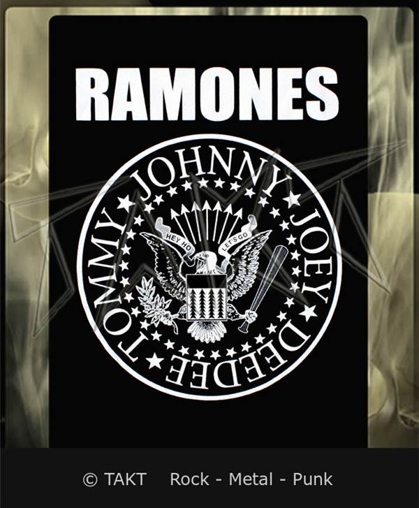 Licence RAMONES. Barva: bílá ačerná. Materiál: kvalitní 100% bavlna. Technologie: sítotisk. Potisk na přední straně trička. Fanouškovi by nemělo chybět tričko RAMONES v šatníku. Příklad rozměru vzorku velikost L : délka cca - 76 cm, šířka - cca 54 cm