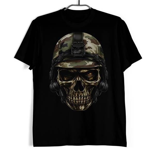 Tričko s lebkou - Duch bojovníka ztělesňuje nezlomenou sílu a odvahu. Design nabízí pohled na lebku oděnou do vojenské přilby s maskovacím vzorem, doplněnou o moderní sluchátka. Tato podoba odraží charakter těch, kdo se nebojí čelit výzvám a kdo si uchovávají neochvějnou houževnatost a bdělost. Toto tričko je více než jen oblečení, je to prohlášení o síle a připravenosti stát na frontě, ať už symbolické nebo reálné.