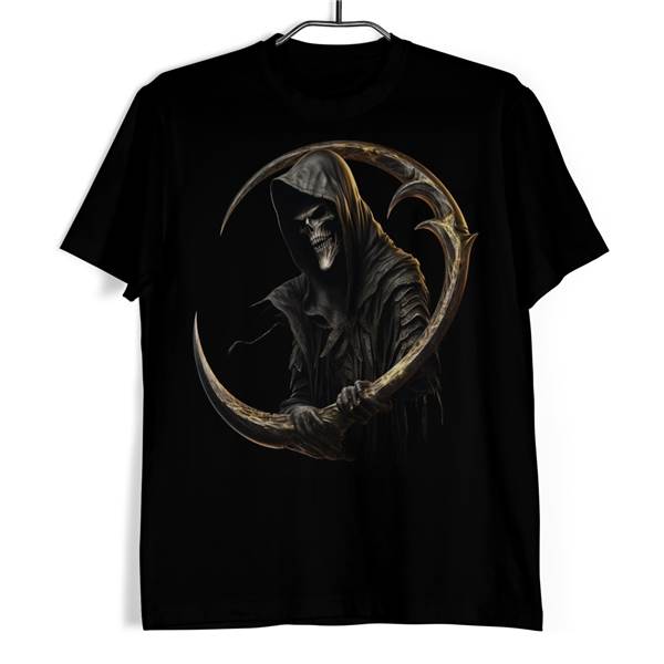 Vydejte se na setkání se samotným strážcem života a smrti s naším tričkem "Pohled smrtky 5". Na tomto designu je zobrazena stojící postava Smrtky, oděná v tradičním hábitu, s kosou v ruce připomínající atmosférou tajemství a neodvratnosti. Lebka, která nahrazuje tvář, pohlíží na vás s neosobním, nehybným výrazem, připomínajícím neúprosnou pravdu o našem konečném osudu. Toto tričko vám připomene nádherně mrazivou krásu života a smrti, spojené v nekonečném cyklu. Pro ty, kteří chtějí vyjádřit svou fascinaci největším tajemstvím existence, je toto tričko s lebkou ideální volbou.