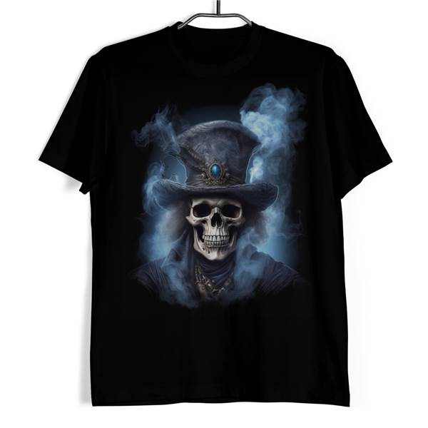Tričko s lebkou "Stín pirátské hlídky" vás vtáhne do nekonečné hlubiny mořských legend. Na tomto výjimečném tričku je zobrazena lebka s kloboukem, oživená namodralým mlhovým oparem v temných modrošedých barvách. Tato jednoduchá, ale sugestivní kompozice vyvolává dojem nevyzpytatelné síly a odvahy pirátského kapitána, který čelí nejdivočejším bouřím. Odejít tam, kam jen málokdo před vámi vkročil, a objevit tajemství rozbouřeného moře. Tričko pro ty, kdo mají rádi dobrodružství a touží cítit vítr v plachtách, i když jsou na souši.