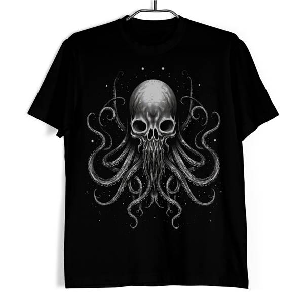 Tričko s lebkou - Vesmírná bestie - v hlubokém vesmírném zákoutí, kde hvězdy tančí v rytmu nekonečna, se zjevuje kraken, jakoby vytržený z Verneových příběhů. Její tentakly se vinou mezi hvězdami. Lebka sugeruje, že i v nádherné, oslnivé temnotě kosmu existuje určitá nebezpečná krása. Kdo je tento strážce z hlubin vesmíru, který spájí staré příběhy s novými legendami?