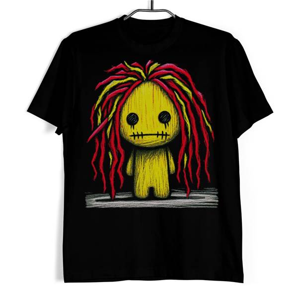Objevte temnou stránku módy s naším tričkem s voodoo panenkou - Děsivé vibrace. Toto černé tričko je zdobeno výrazným designem voodoo panenky s pestrými červenými a žlutými dredy, které dodají vašemu outfitu jedinečný a neotřelý vzhled. Tričko s voodoo panenkou - Děsivé vibrace je ideální pro všechny milovníky alternativního stylu a hororových motivů.