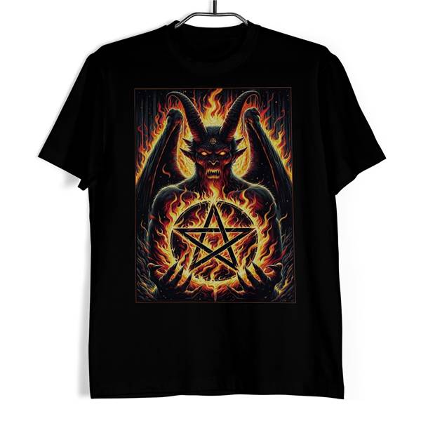 Tričko - Satan a pekelné plameny odhaluje sílu a ohnivou vášeň skrytou v tajemných symbolech a mýtech. Na černém pozadí vyniká zářivý obrázek satanské bytosti, která je obklopena plameny a drží pentagram – symbol mocný a provokativní. Tento design je pro ty, kteří mají odvahu a nebojí se vyvolat debatu svým stylem. Je to tričko s postojem, které slibuje, že jeho nositel nebude nikdy ignorován.