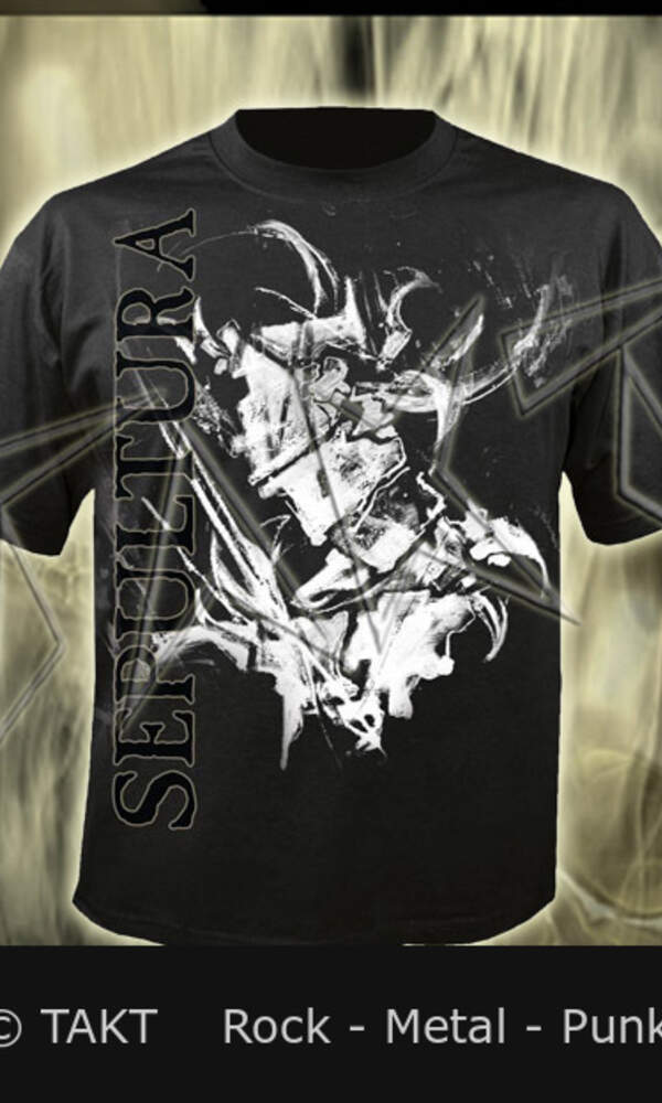 Barva: černá. Materiál: kvalitní 100% bavlna. Technologie: sítotisk na přední í zadní straně trička. Fanouškovi by nemělo chybět tričko SEPULTURA v šatníku. Rozměr: vel. XL délka cca 80 cm, šířka cca 62 cm. Licence SEPULTURA